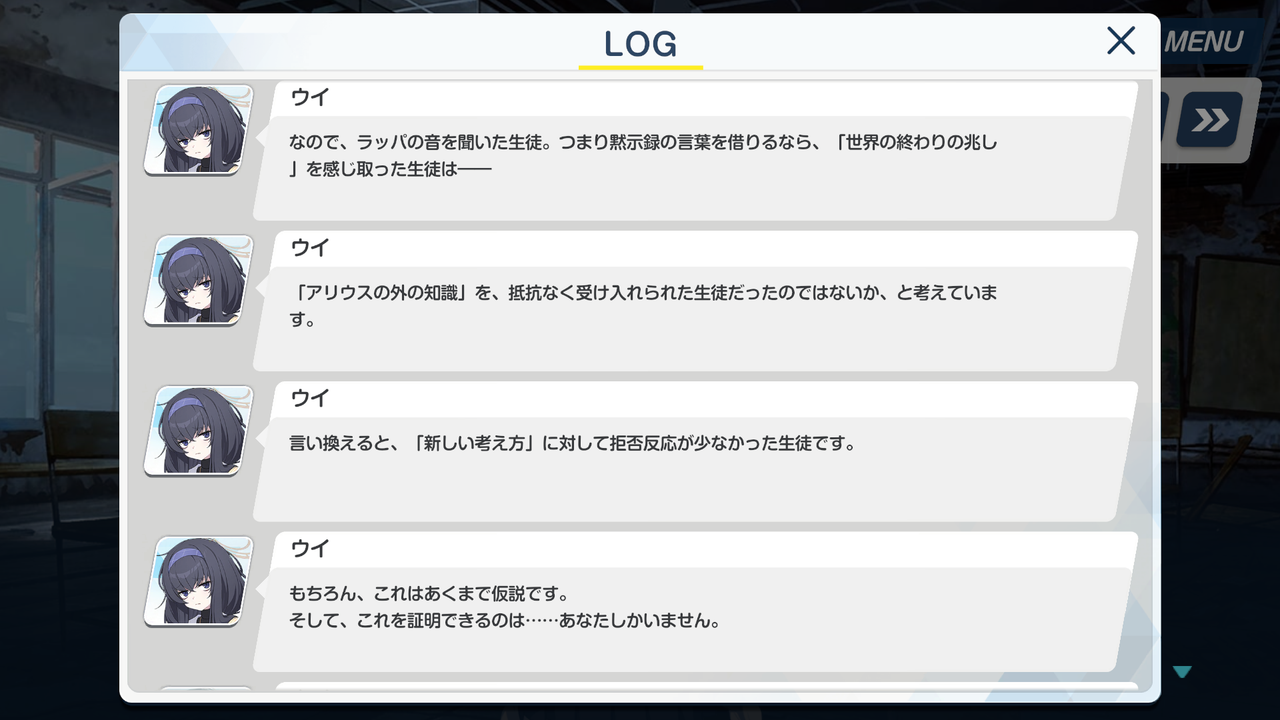 憂聽了マイア發生的事之後推測會聽到喇叭聲的都是能接受新的知識的學生