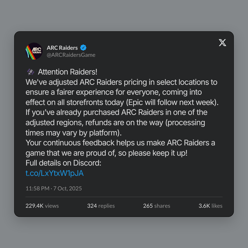 https://x.com/ARCRaidersGame/status/1975591536680153500