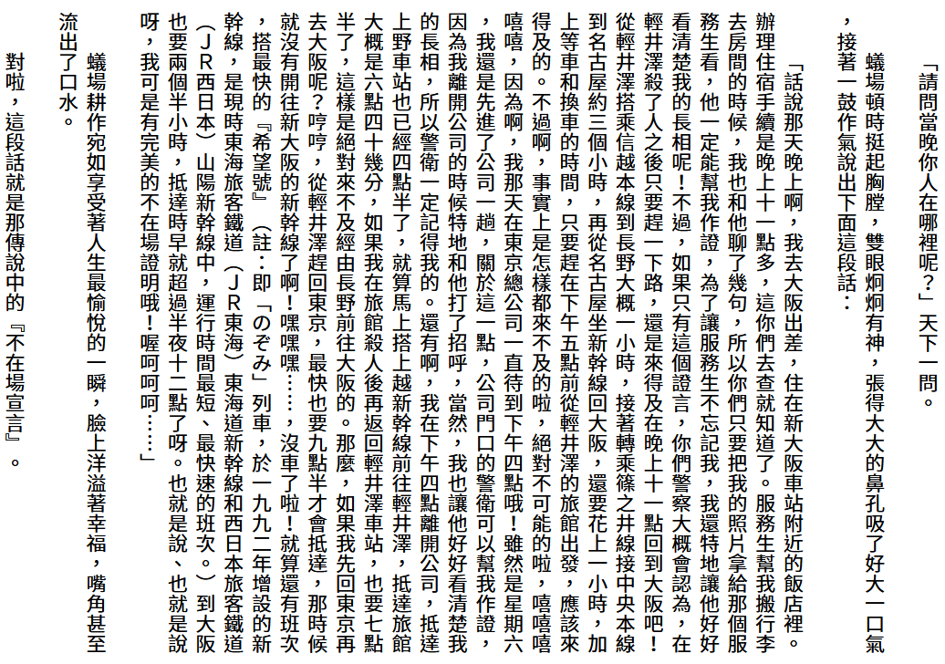 : 通常會講我根本不在場什麼的,完美不在場證明這詞充滿著