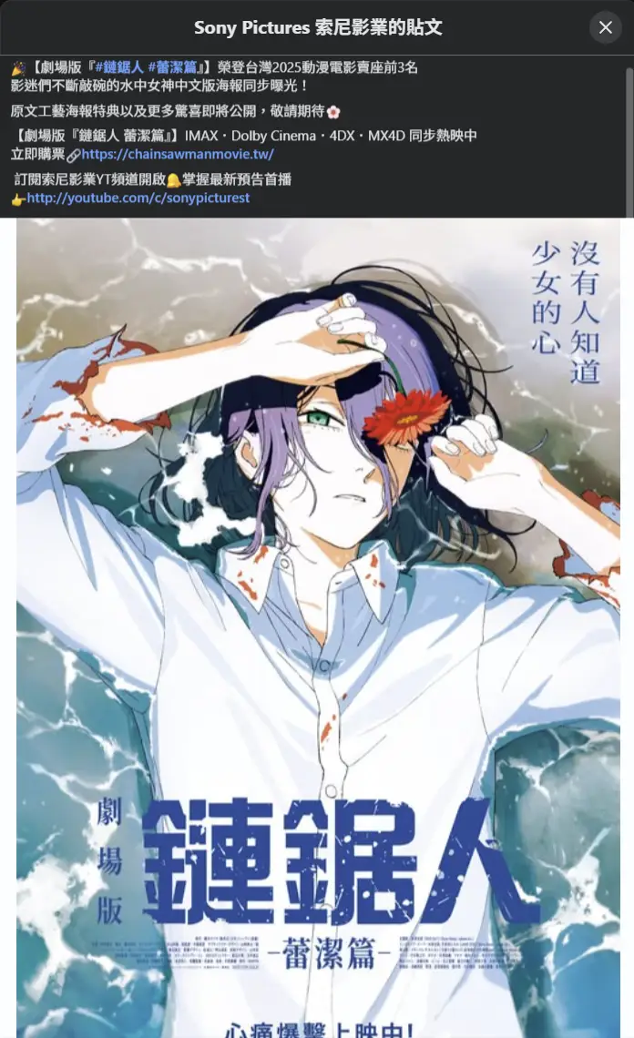 [閒聊] 索尼影業FB-鏈鋸人應該又有新特典 - C_Chat 板