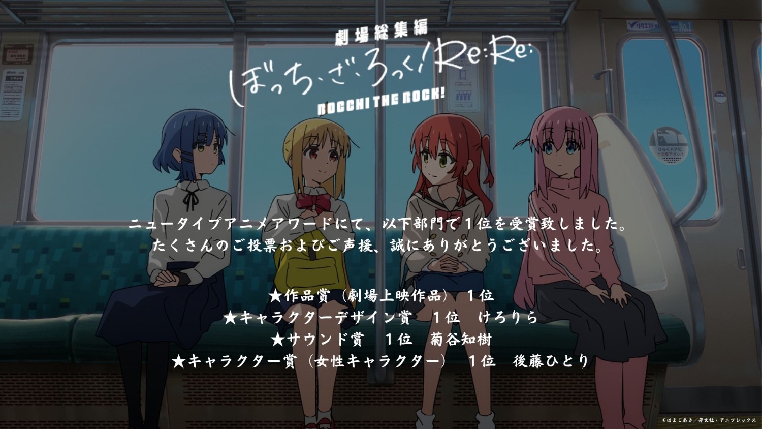 孤獨搖滾總集篇後篇Re:Re:獲得在NEW TYPE2025年度動畫大獎,得到第一名,大家一起恭喜