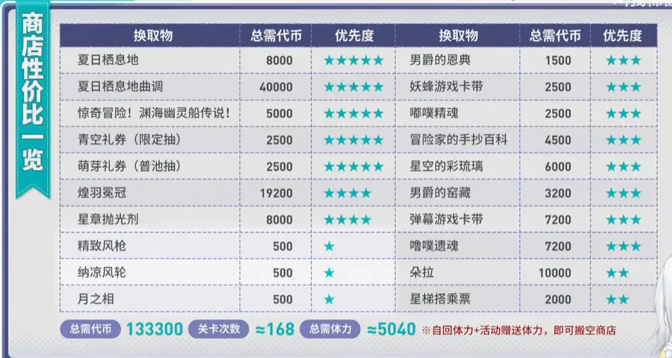 → lsd25968: 就性價比問題,上面也有人提到了,活動商店基本上是所有東西性價比都比普通入手方式還要高。我也是參考別人的分析而已,你真的不認同想先換好感度道具也沒差啊,大家換啥對我來說怎會有差==31F 11/10 09:20
