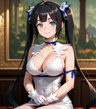 我要它“生出在地下城搞錯的赫斯蒂亞 用蒙娜麗莎的坐姿”