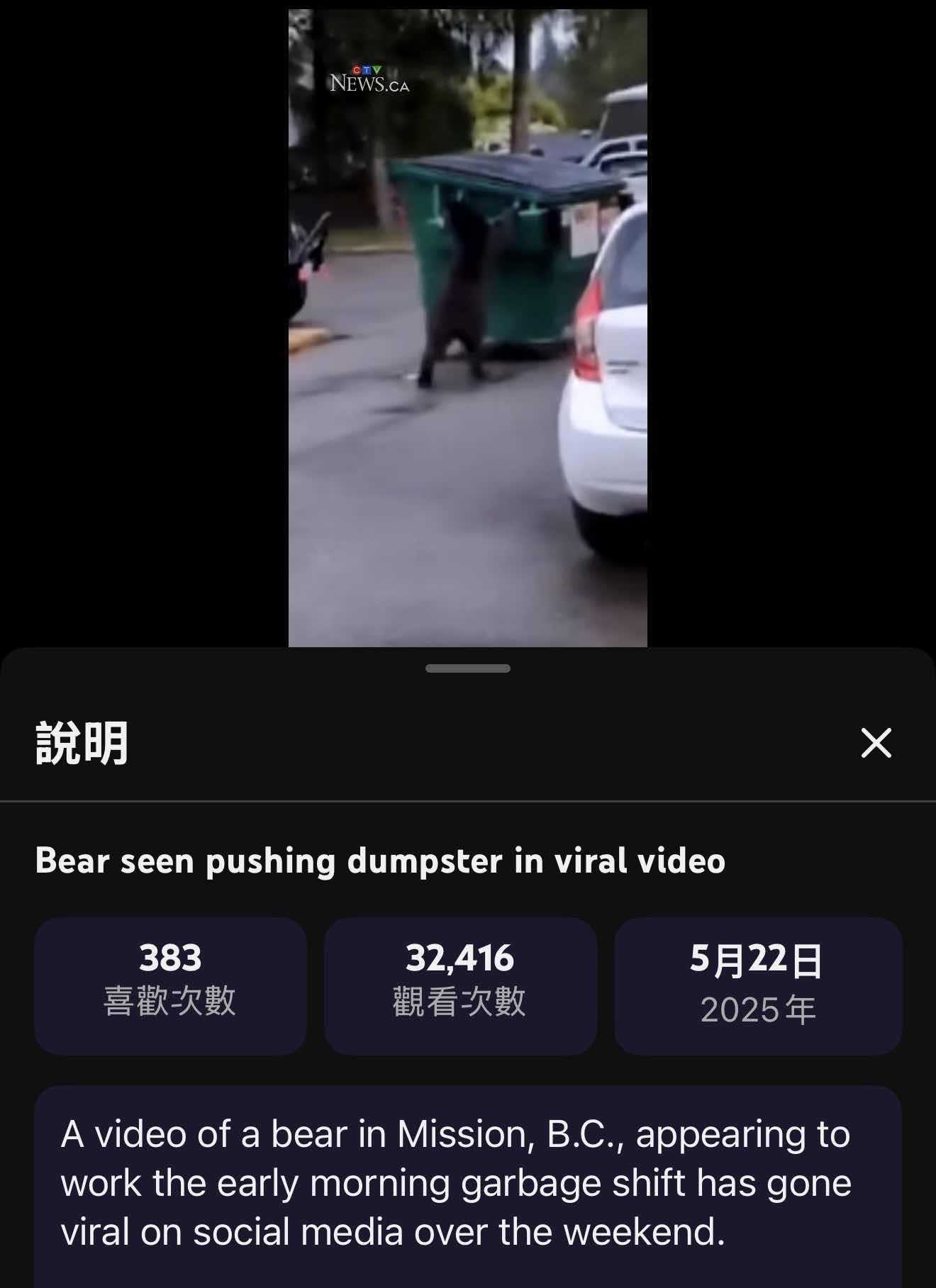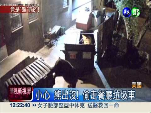 現,偷垃圾車的居然是一隻熊!老闆又好氣又好笑,研判牠可能是聞到了垃圾筒裡食物的