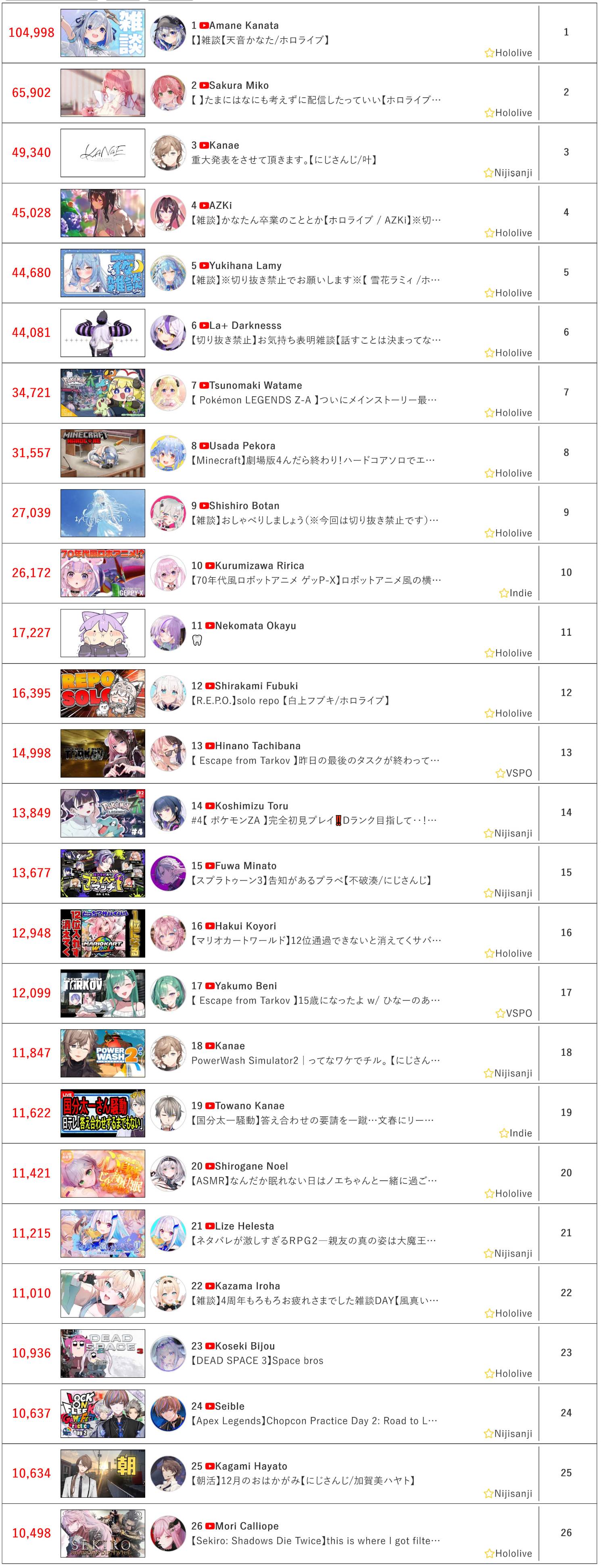 [Vtub] 12/1同接鬥蟲 - C_Chat 板