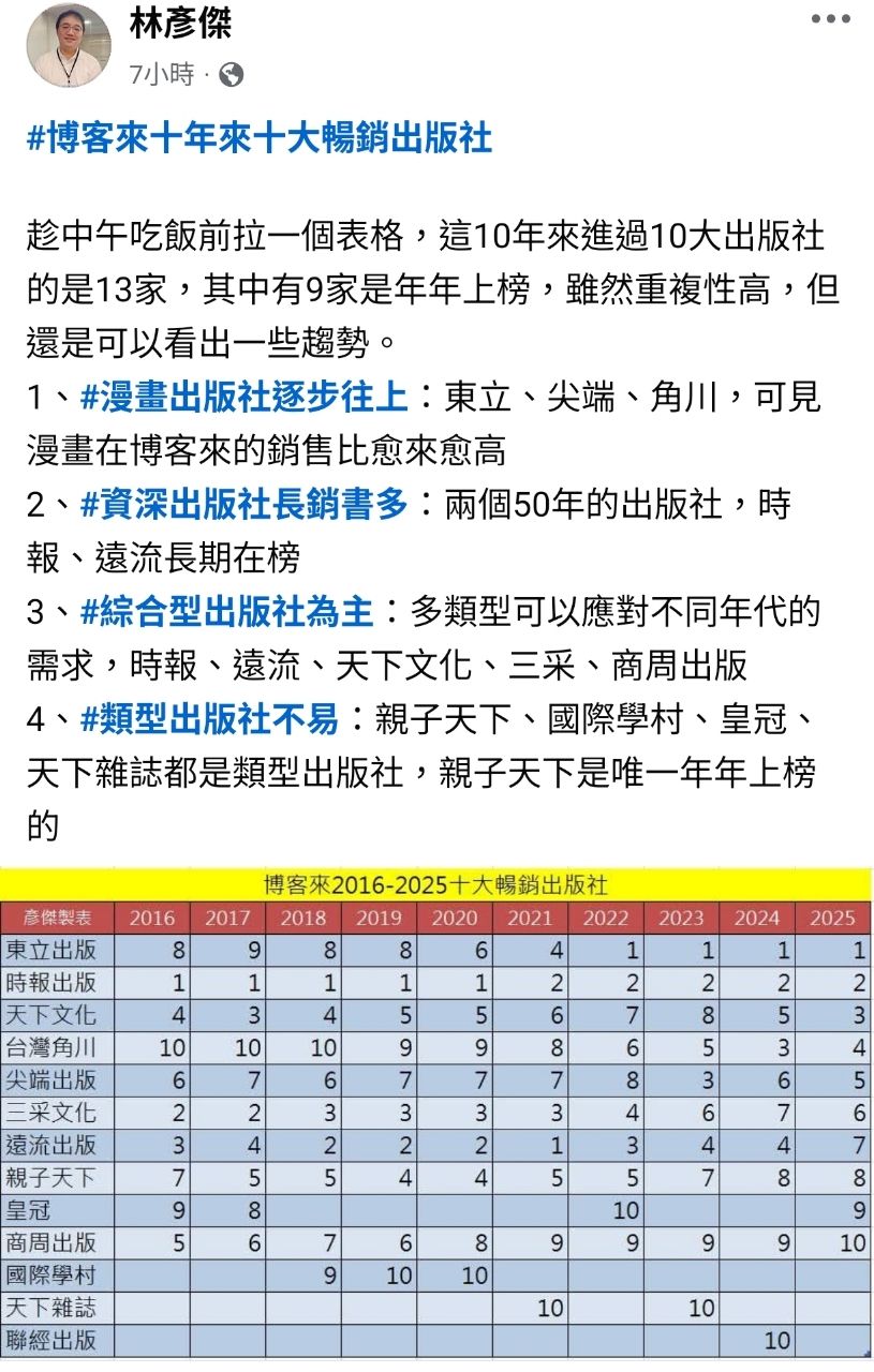 [情報] 東立連續四年蟬聯博客來銷售冠軍