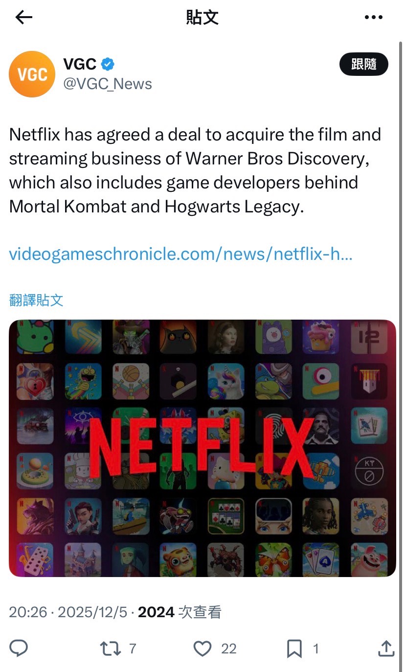 Re: [情報] Netflix宣布以827億美元收購華納兄弟 - C_Chat 板