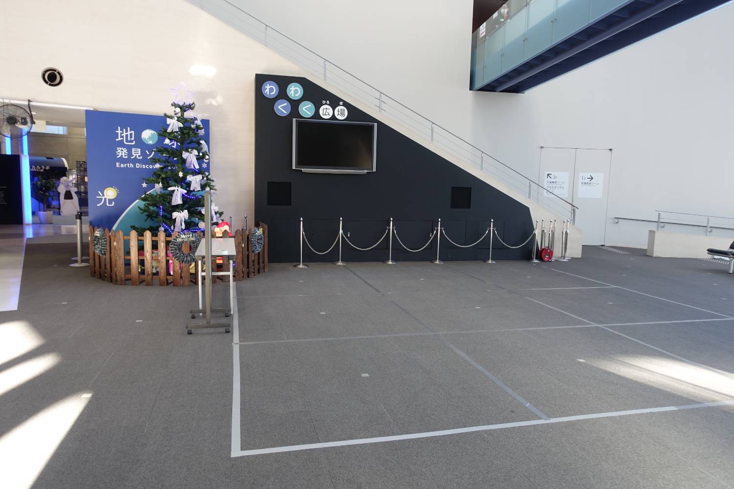 地球發現區域的一樓則是有更大型的互動式體驗裝置,純子的立牌擺在這裡,姿勢非常的