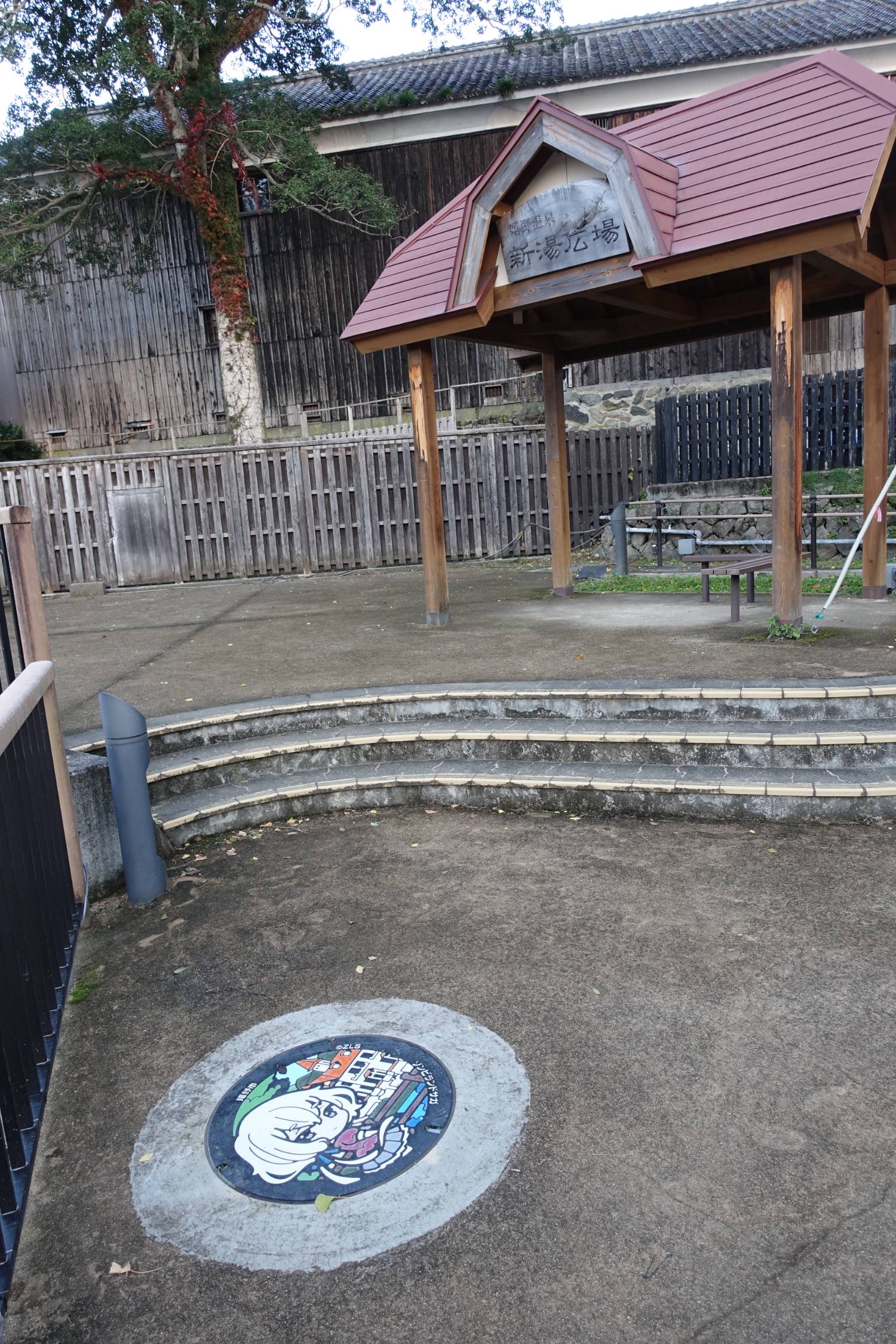 從新湯廣場走過橋就會到對面的嬉野溫泉公園,嬉野溫泉公園裡有愛的人孔蓋,同時也是