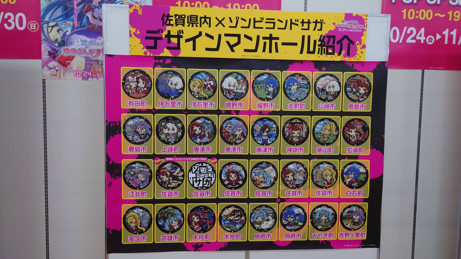 為了配合動畫觀光,佐賀縣在縣內設置了30個佐賀偶像的人孔蓋,從機場去道之驛鹿島一