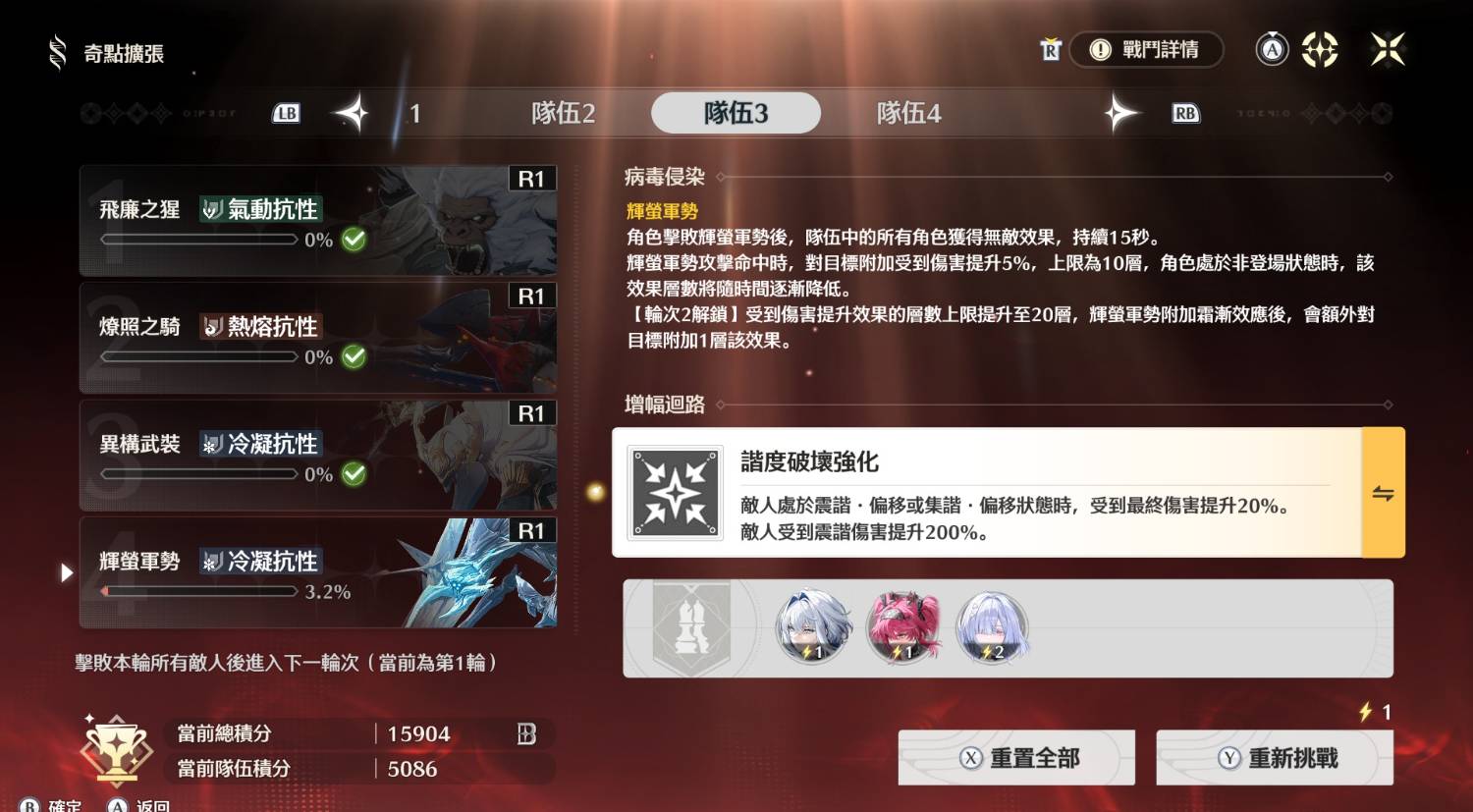 之前用維里奈打得有點辛苦,有了莫寧終於能打出4隊5000分