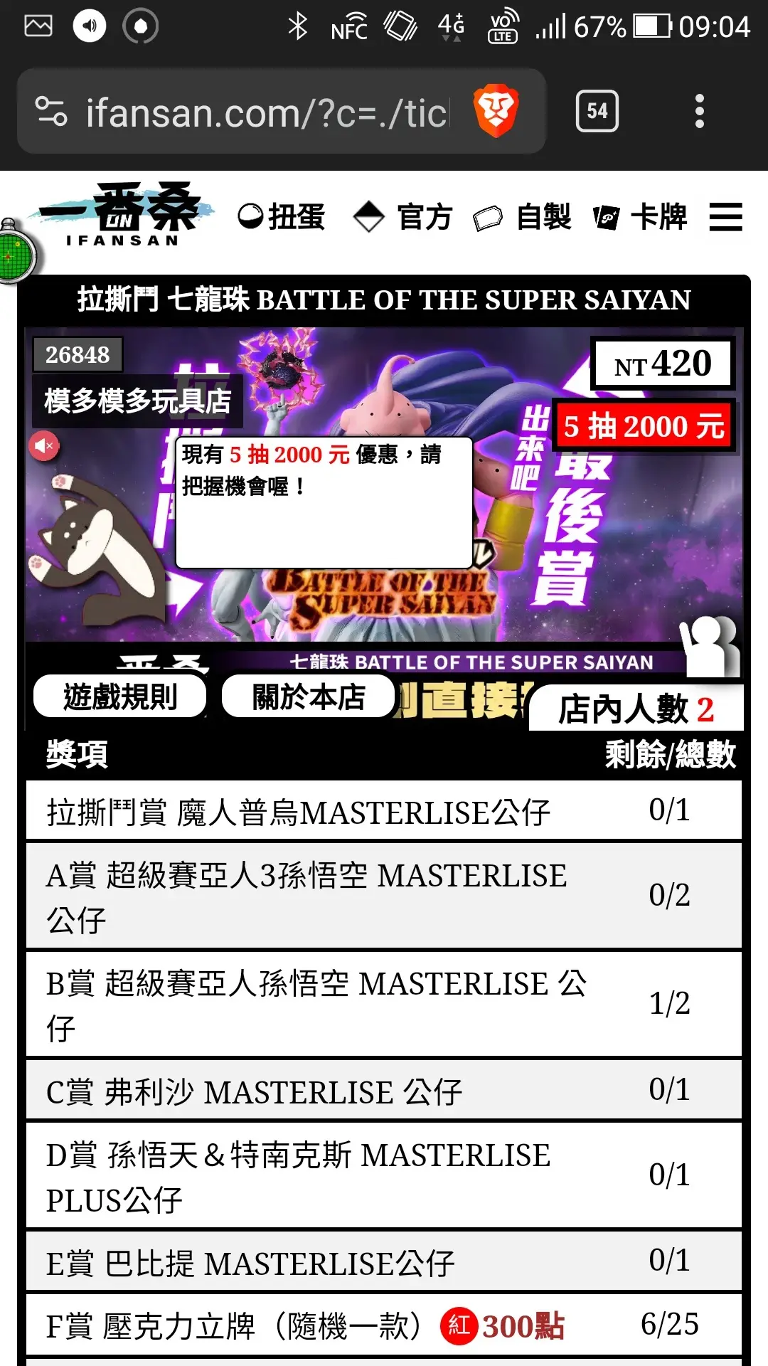 首先這個一番桑的運作模式似乎是給很多玩具店一個共用的線上抽平台