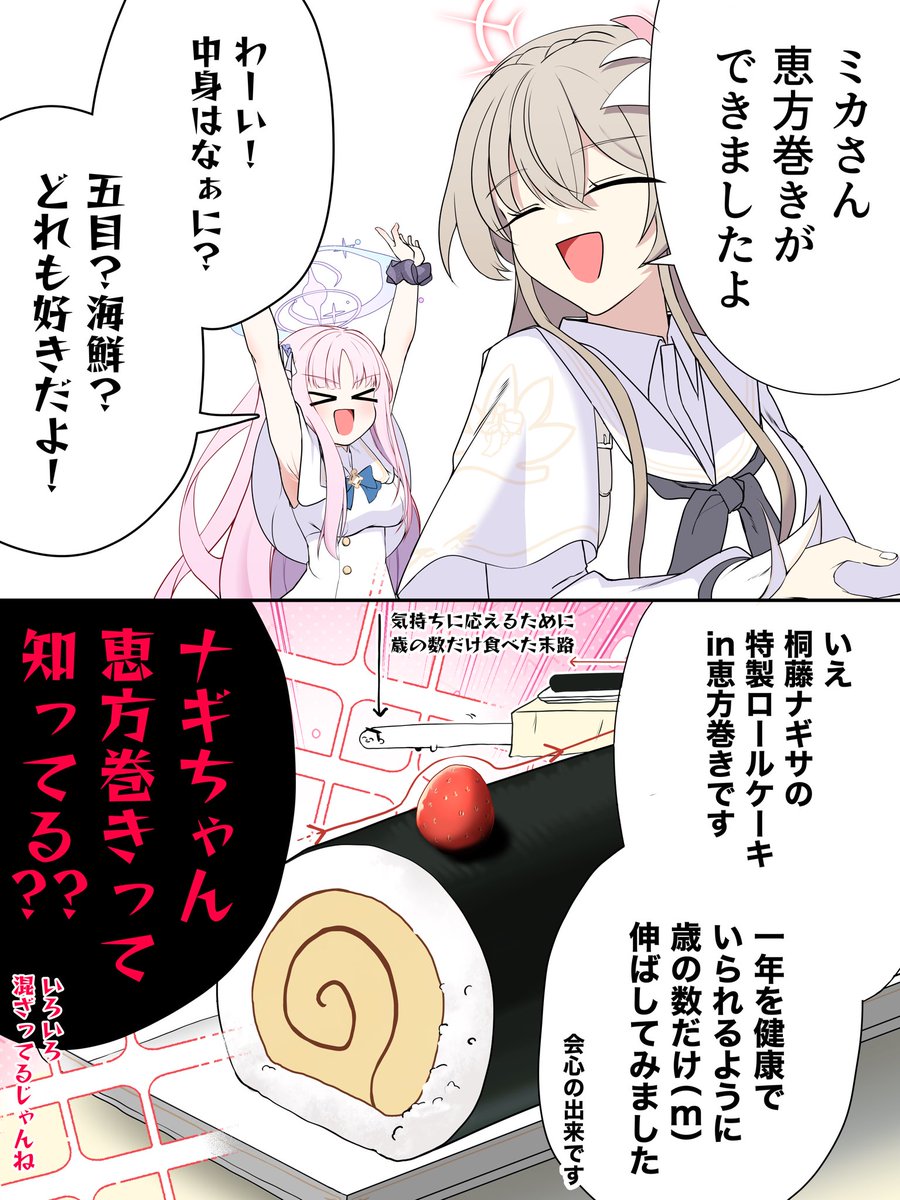 「不,這是我桐藤渚特製的蛋糕捲in惠方卷,為了保佑一年健康做得和年紀(公尺)一樣長