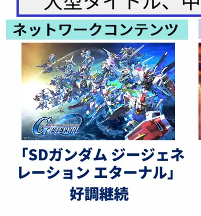 數位事業方面為《SD鋼彈 G世代 永恆》;