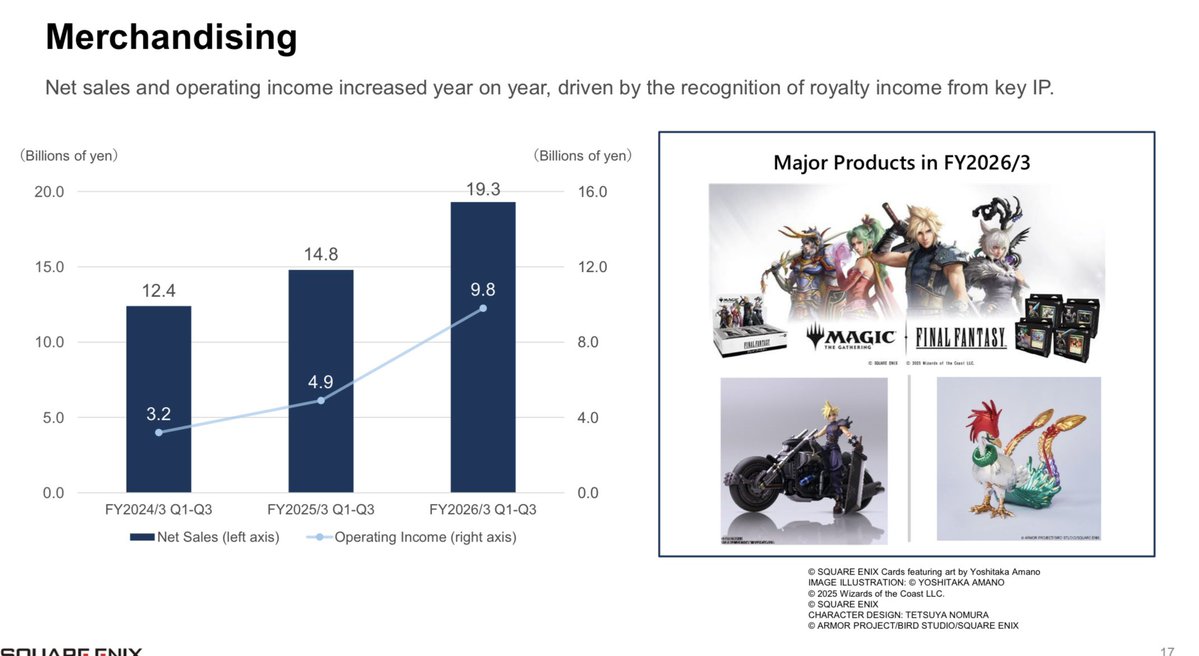 SQUARE ENIX HOLDINGS 於 2 月 5 日公布了第三季(Q3)授權事業(Rights/Property)