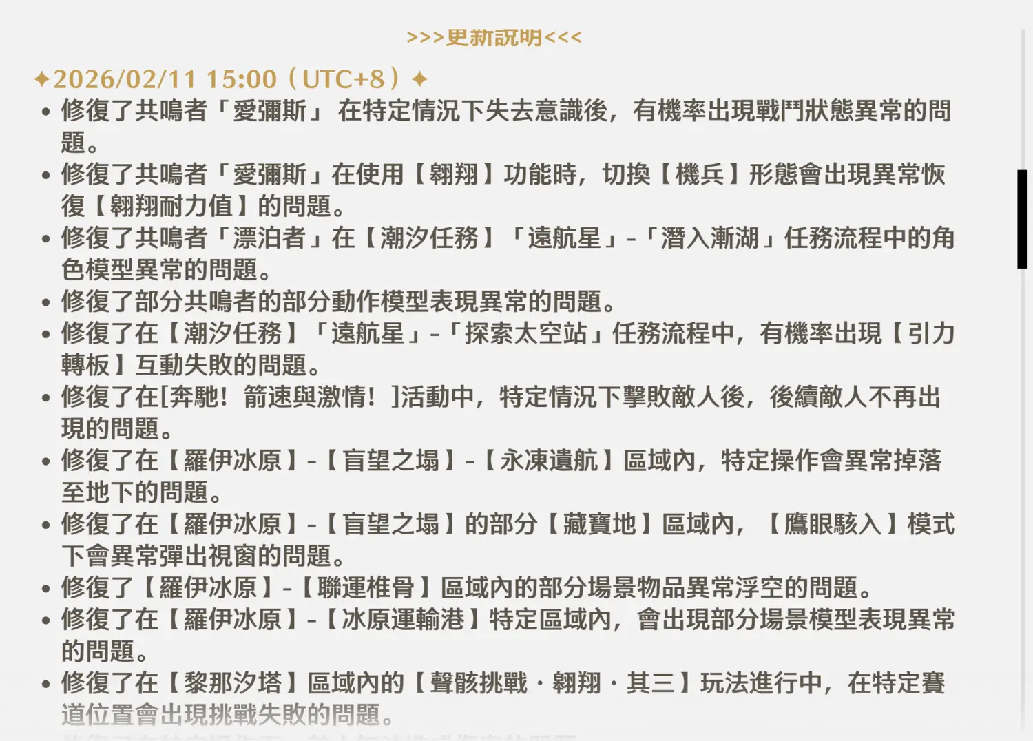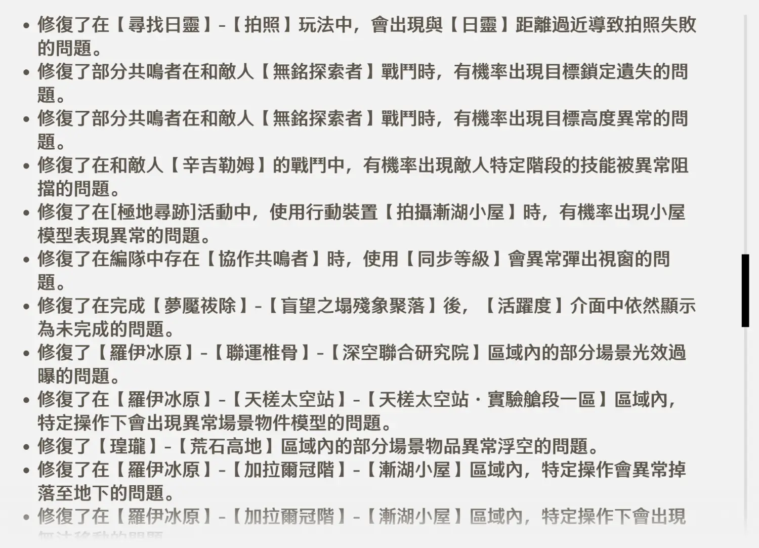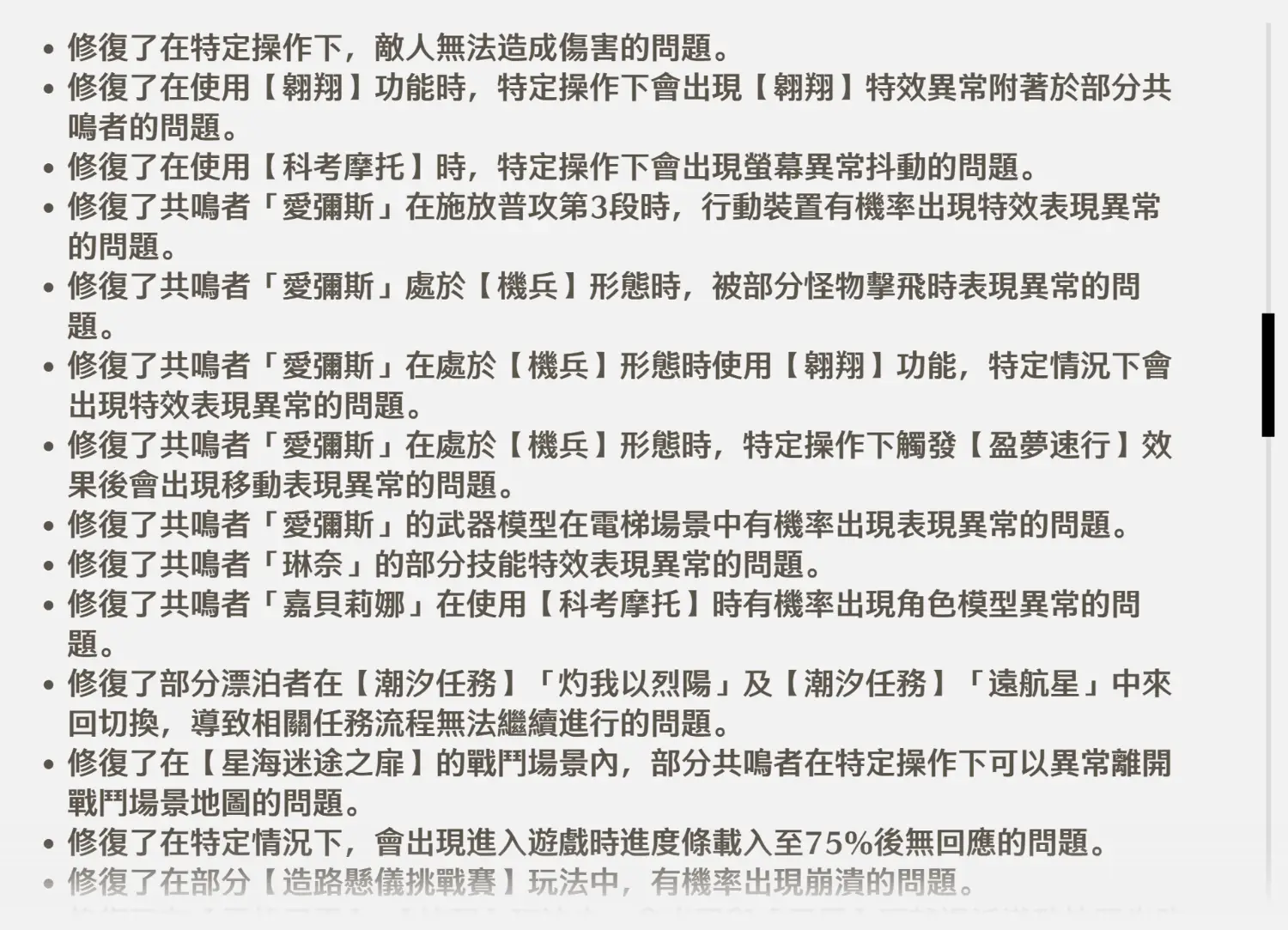 裡面有一條"修復部分共鳴者的部分動作模組異常問題"