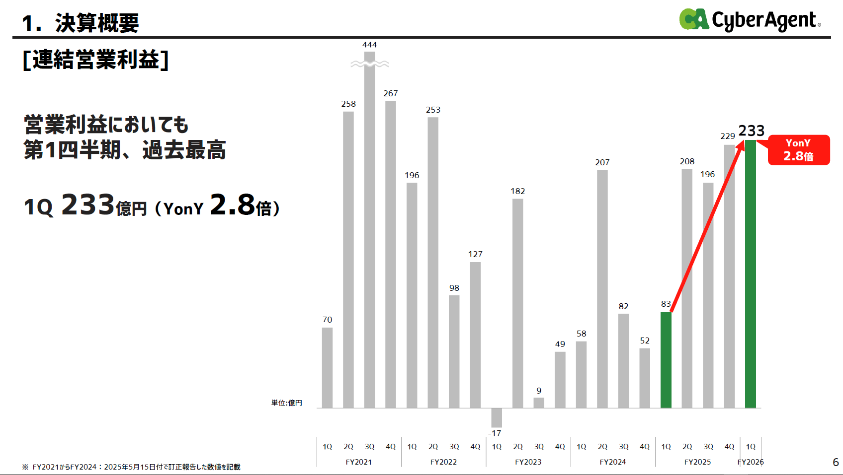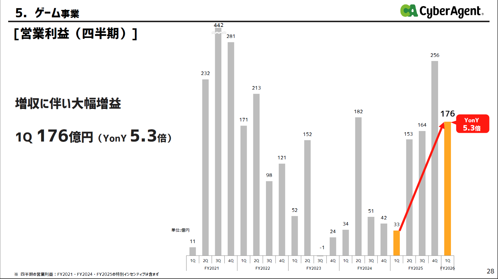 營利 去年同期相比 5.3倍(176億円)