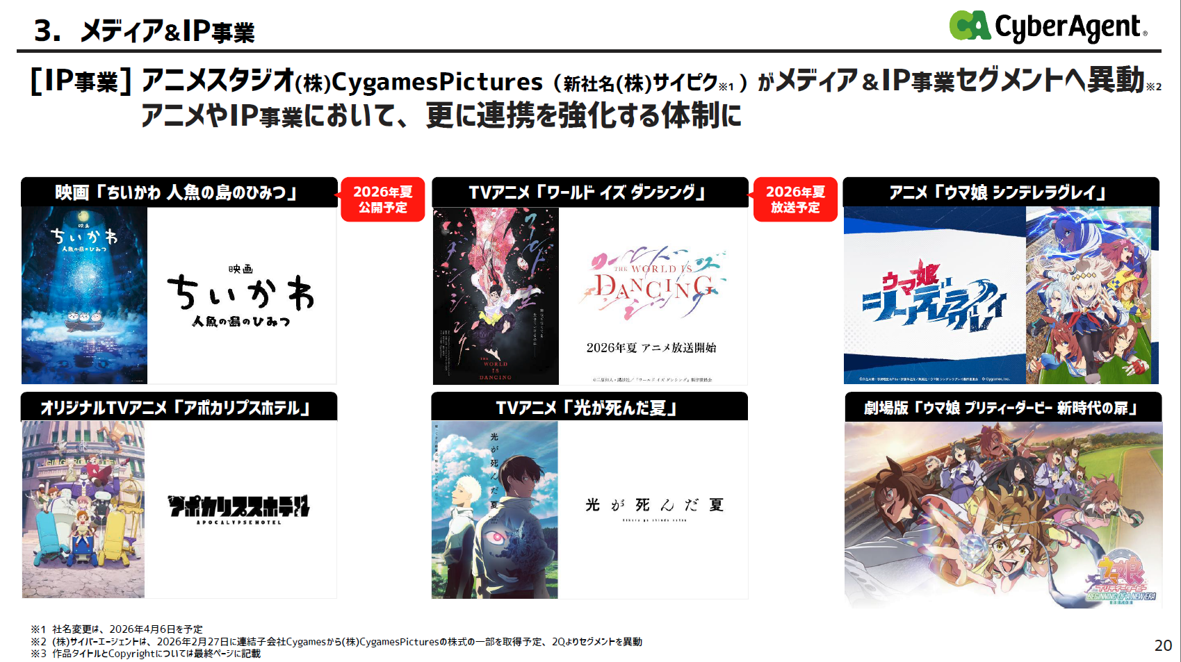 CygamsPictures 2Q異動到媒體&IP區塊