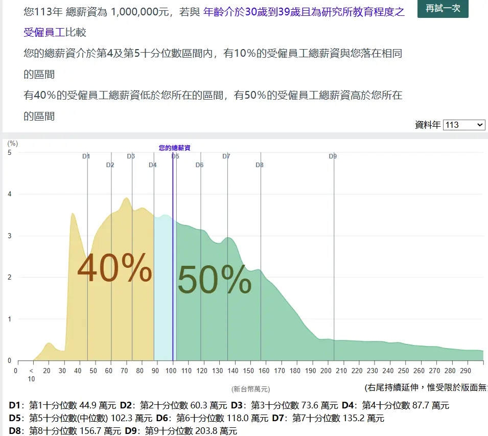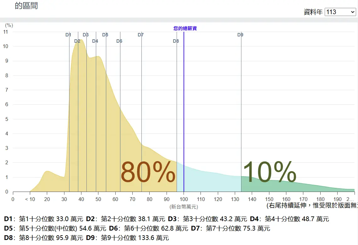 年薪百萬在全體受雇員工是在D8~D9 也就是PR值超過80