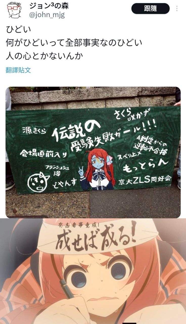 : 京大的看板幾乎都是叫那些考生準備重考的啊