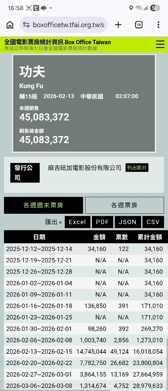 : 經過春節連假跟228連續假期之後,功夫票房已經高達4千1百萬了!