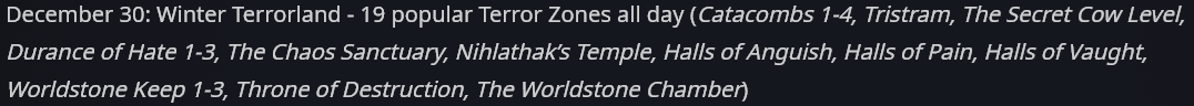 - Winter Terrorland: 19 Popular Terror Zones all day