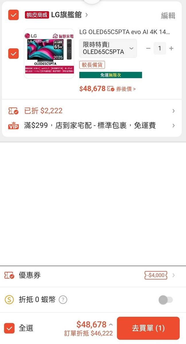 : 聽說,LG 77C5,今天蝦皮61K。