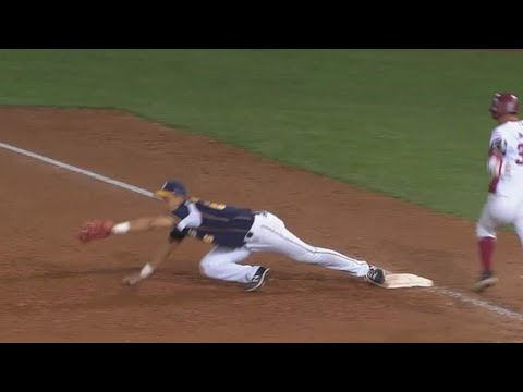 投手前強襲球打到CCC的腳,忍痛撿球傳一壘刺