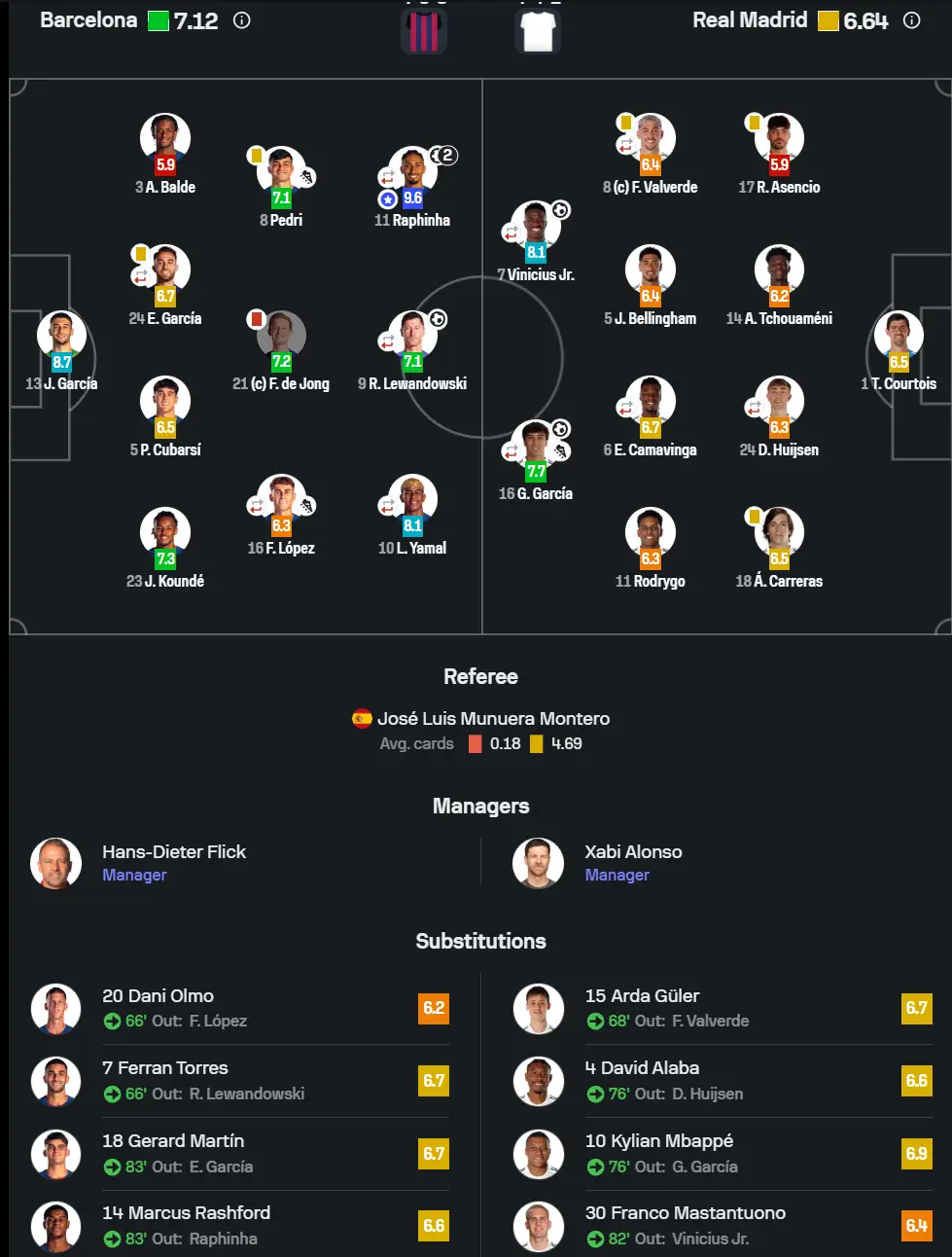 皇家馬德里替補:13-盧寧、2-卡瓦哈爾、4-阿拉巴、20-弗蘭-加西亞、22-呂迪格、35-
