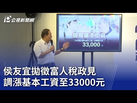 國民黨總統參選人侯友宜拋出政見,當選後任內基本工資要到33000元,更要開徵富人稅