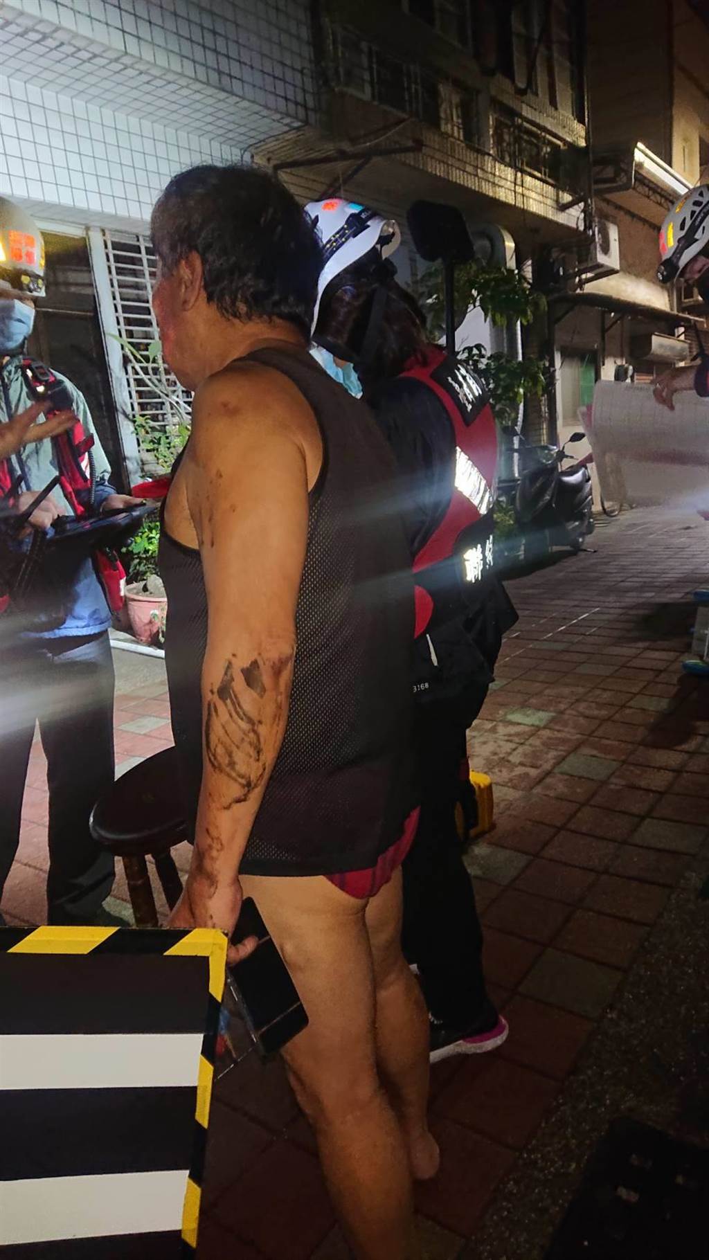圖自行滅火失敗,嚇得逃出屋外報警,郭姓屋主不顧還穿著三角內褲,就往外逃生,2名