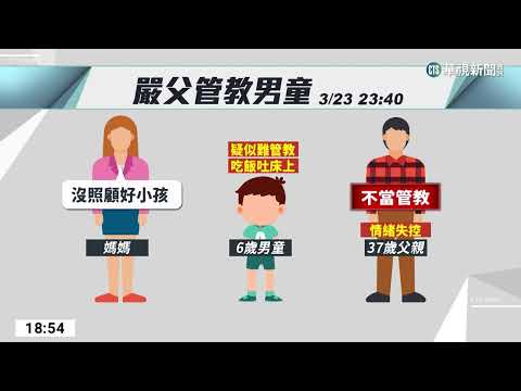 又有嚴父過度管教孩童!23日晚間11點多,有一名6歲孩子疑似調皮難管教,吃飯吐在床