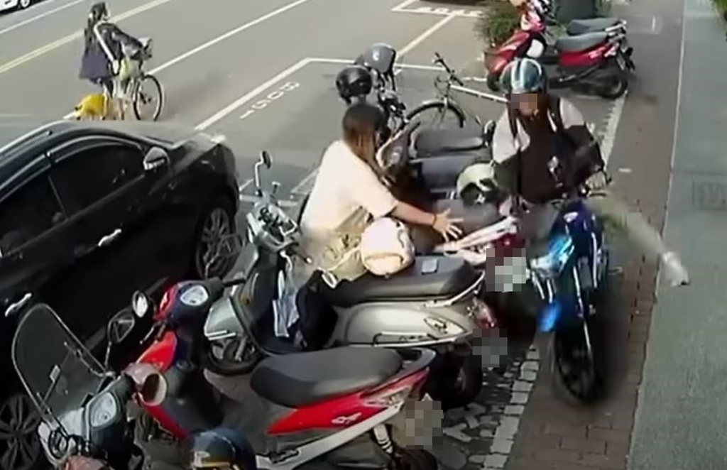 女性友人道別後,疑似握放離合器方式不對,導致整輛打檔車爆衝,且將路邊停車格內的