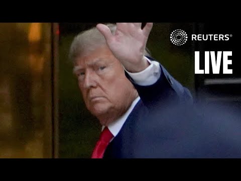 川普即將在2點15分出庭,法院外聚集的大批的支持者