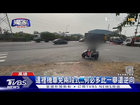 高雄小港區一處T字路口,機車不需要兩段式左轉,但就是會在上下班時間,出現集體逆