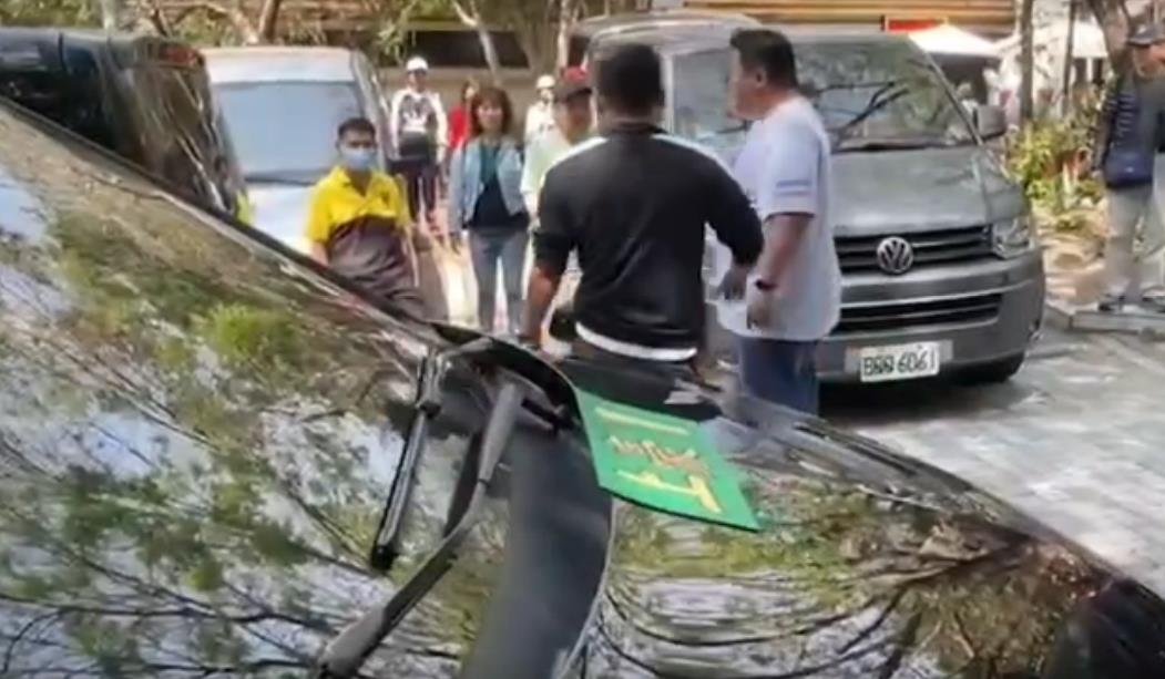 影片中,兩車隊駕駛在南橫公路梅山口休息站的路中央對峙互嗆,疑一車隊駕駛逆向擋住
