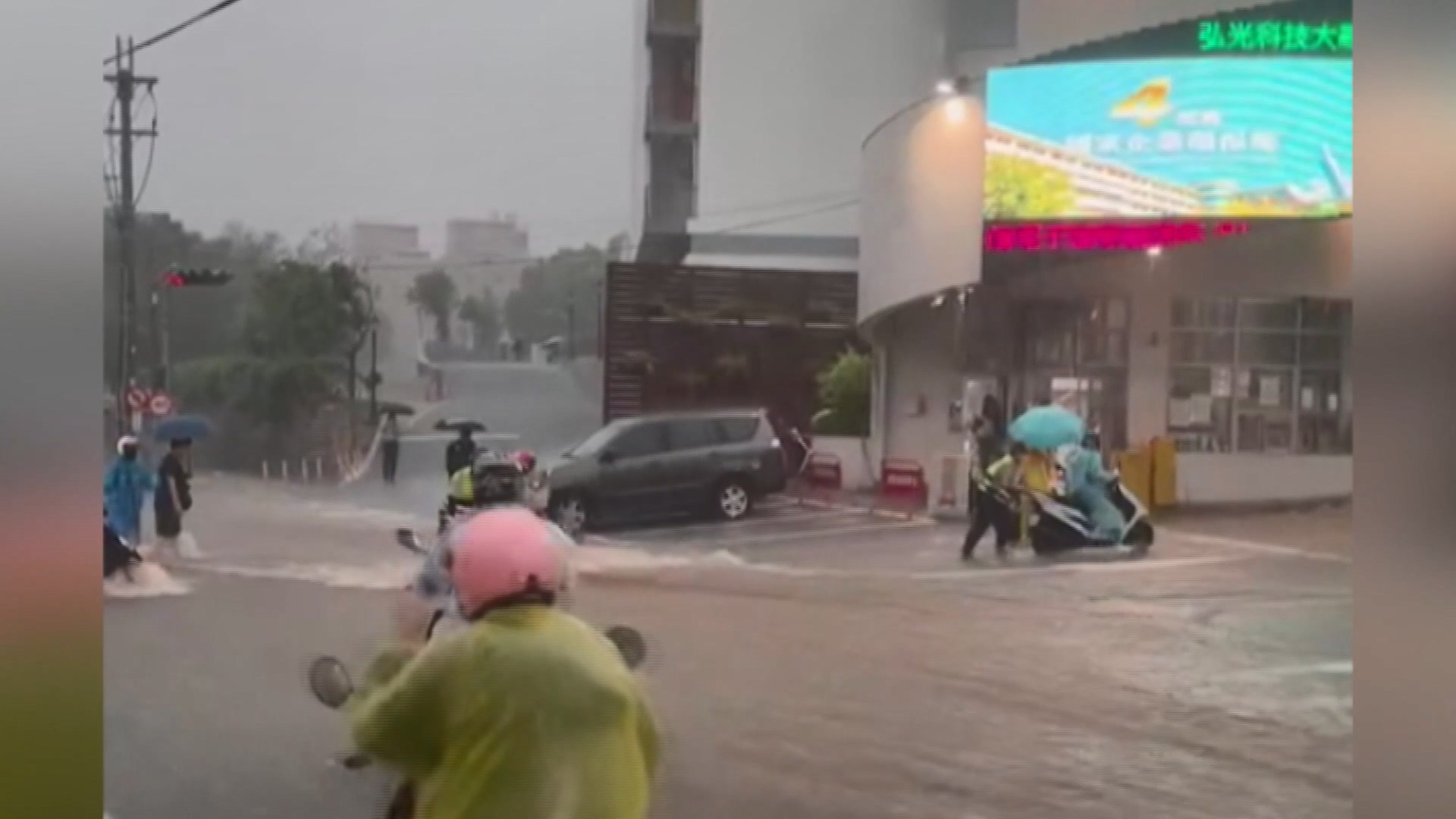 弘光科大前淹成「大型滑水道」 學生慘摔遭沖走