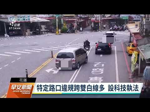 同樣也是在花蓮,建國路與中山路路口增設右轉專用車道,民眾常違規跨越雙白線右轉,