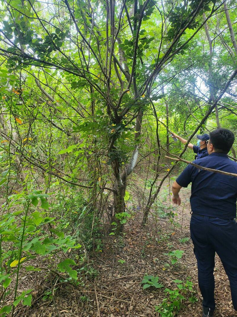 探勘林地,隱約看到樹上有個疑似人形的晃動影像,直覺不妙,於是在昨天下午4點多,