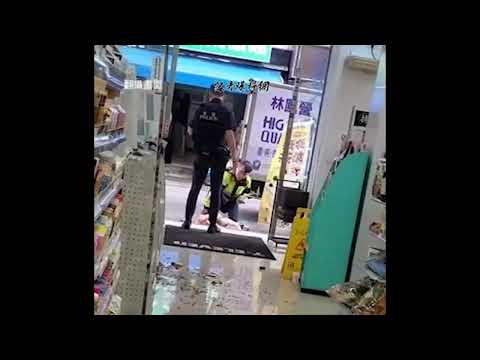 在超商門口時,一名員警拿出警棍先朝他頭部重重揮擊一棍,之後就接連揮擊並繞到朱男