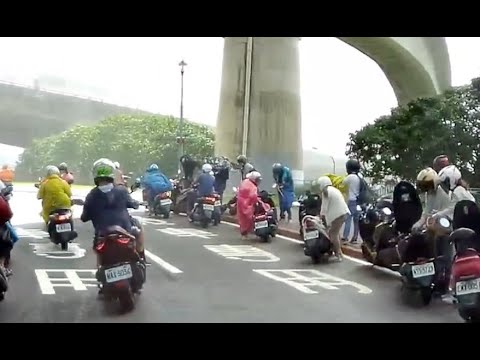 理智一點的是騎到橋下找安全的地方穿雨衣