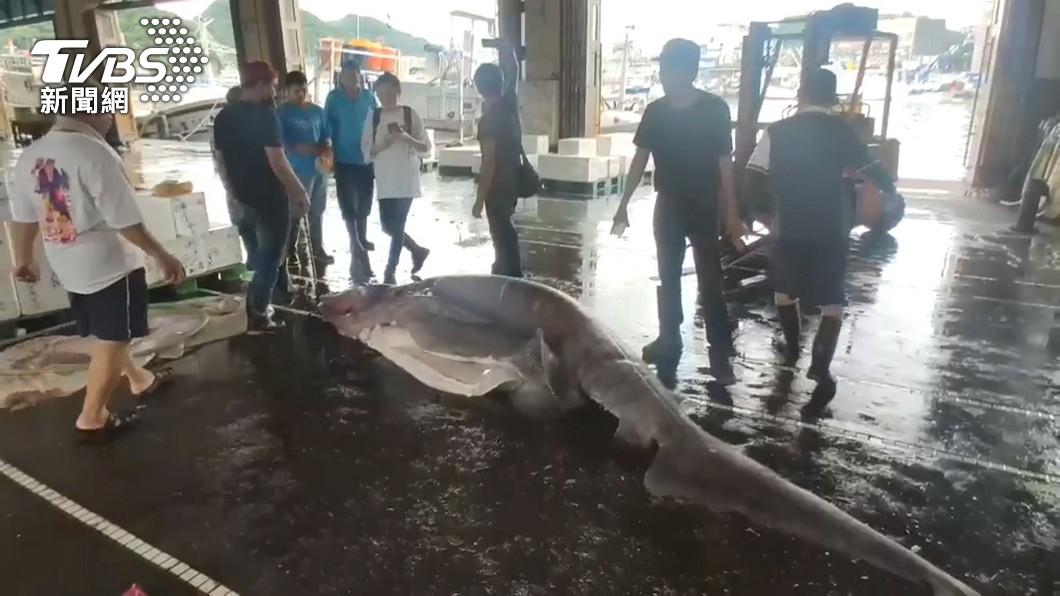 蘭南澳漁民在13日捕獲深海鯊魚「哥布林鯊」重量達到800公斤,這也是台灣目前捕到最