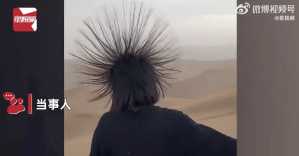 ,在乾燥的沙漠中,靜電聚集的現象更容易發生。因此,當遊客們的頭髮出現這種現象時