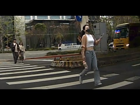 看她一邊跑一邊晃讓我不知道該等紅燈還是看她