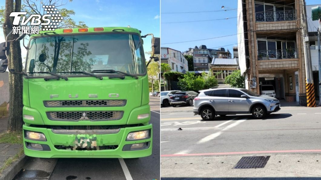 林男在穿越馬路時,先後遭到曳引車、休旅車撞輾。(圖/TVBS)