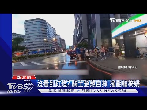 沒看到紅燈? 騎士急煞自摔撞翻輪椅婦