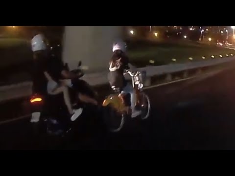 很猛,小時候見到+9 騎摩托車腳踩 腳踏車加速前進