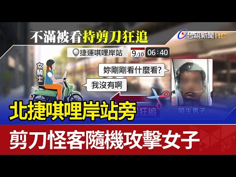 : 對到眼抓狂?北投唭哩岸捷運站外詭異男疑持剪刀 狂追嚇壞女騎士