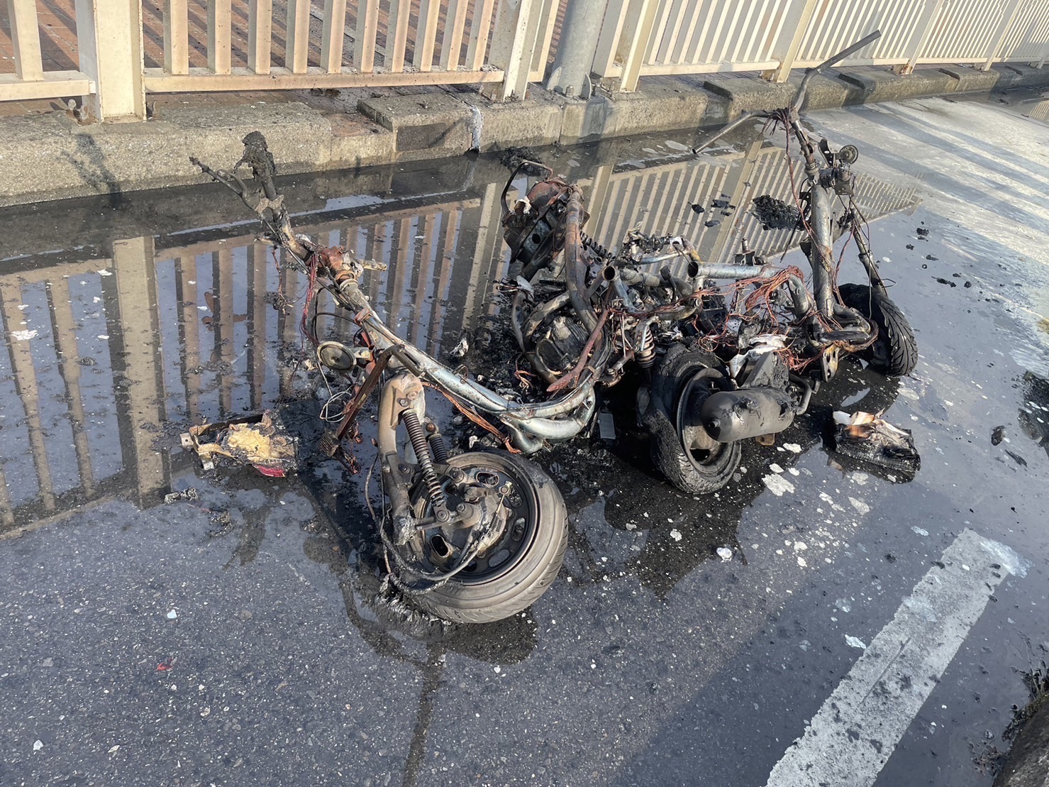 感覺車禍撞得沒有很嚴重機車卻燒成這樣?