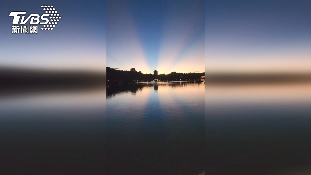 在台北的環河快速道路,也有人拍下,天空中好幾道光束,藍色與紅色交錯;在台北大湖